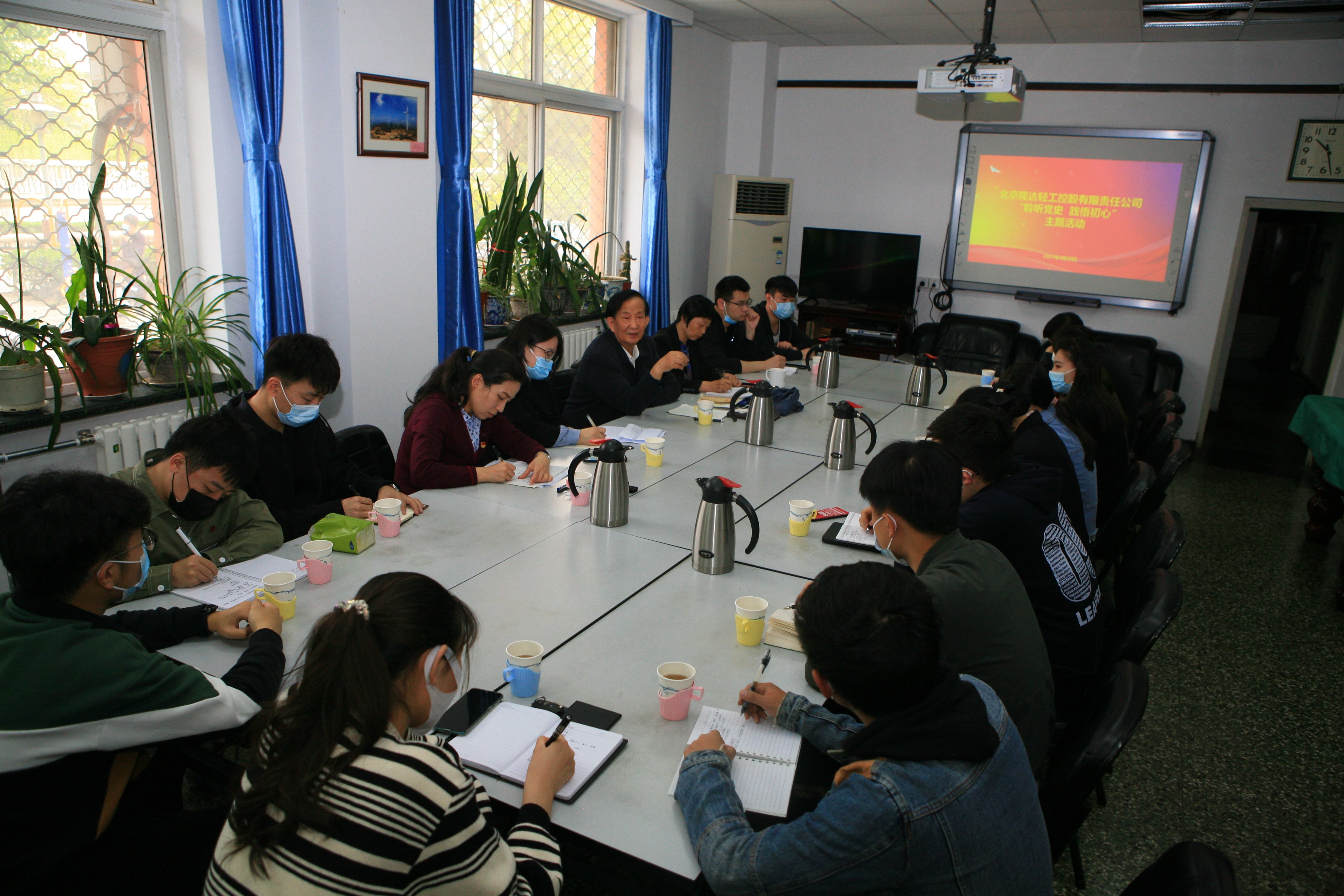 隆達公司團員青年代表在二輕老干部活動站聽隆達公司原黨委書記、董事長邢德海講黨史、企業(yè)奮斗史。
