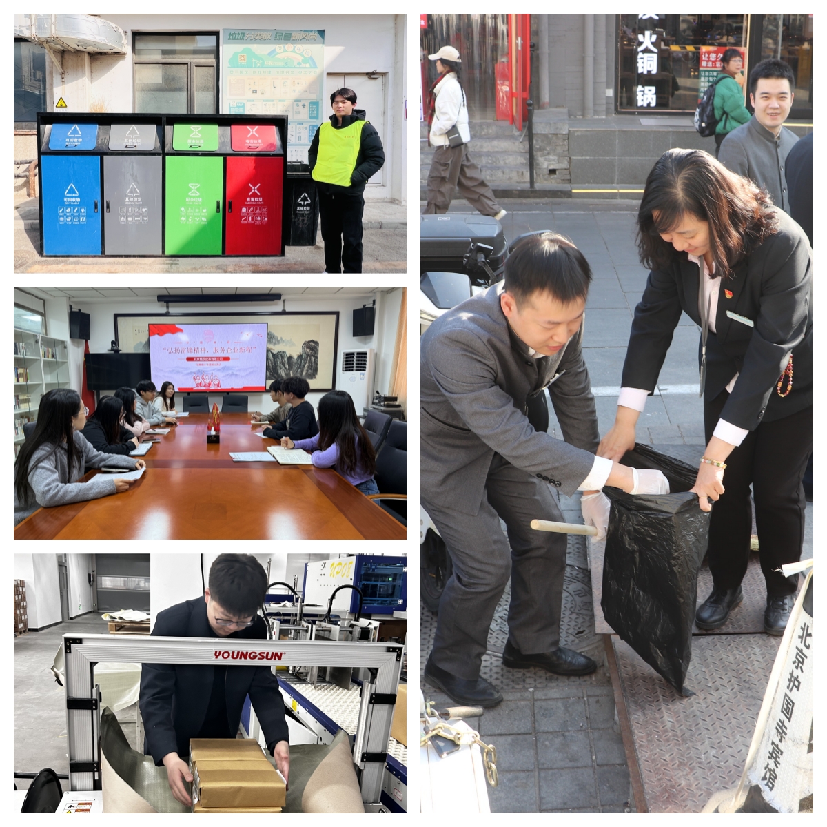 隆達(dá)公司所屬印刷集團(tuán)團(tuán)支部組織前往順義智慧印刷產(chǎn)業(yè)園和安全印務(wù)數(shù)字化示范基地開展生產(chǎn)幫工志愿服務(wù)活動,團(tuán)員青年踴躍承擔(dān)書籍配套打包、包裝貼簽和物料搬運(yùn)等工作,累計完成10萬余本書籍配套、2000余套書籍包裝打包工作,為服務(wù)企業(yè)生產(chǎn)經(jīng)營貢獻(xiàn)力量;所屬輕工集團(tuán)團(tuán)總支、璟程公司團(tuán)支部、楠辰公司團(tuán)支部、護(hù)國寺賓館團(tuán)支部、豪威大廈團(tuán)支部、塑三文創(chuàng)和富潤飯店團(tuán)員先后開展公車清潔、桶前值守、垃圾分類、雷鋒事跡學(xué)習(xí)等活動,將雷鋒精神融入到經(jīng)營工作和社會建設(shè)中,爭做新時代追“鋒”人。