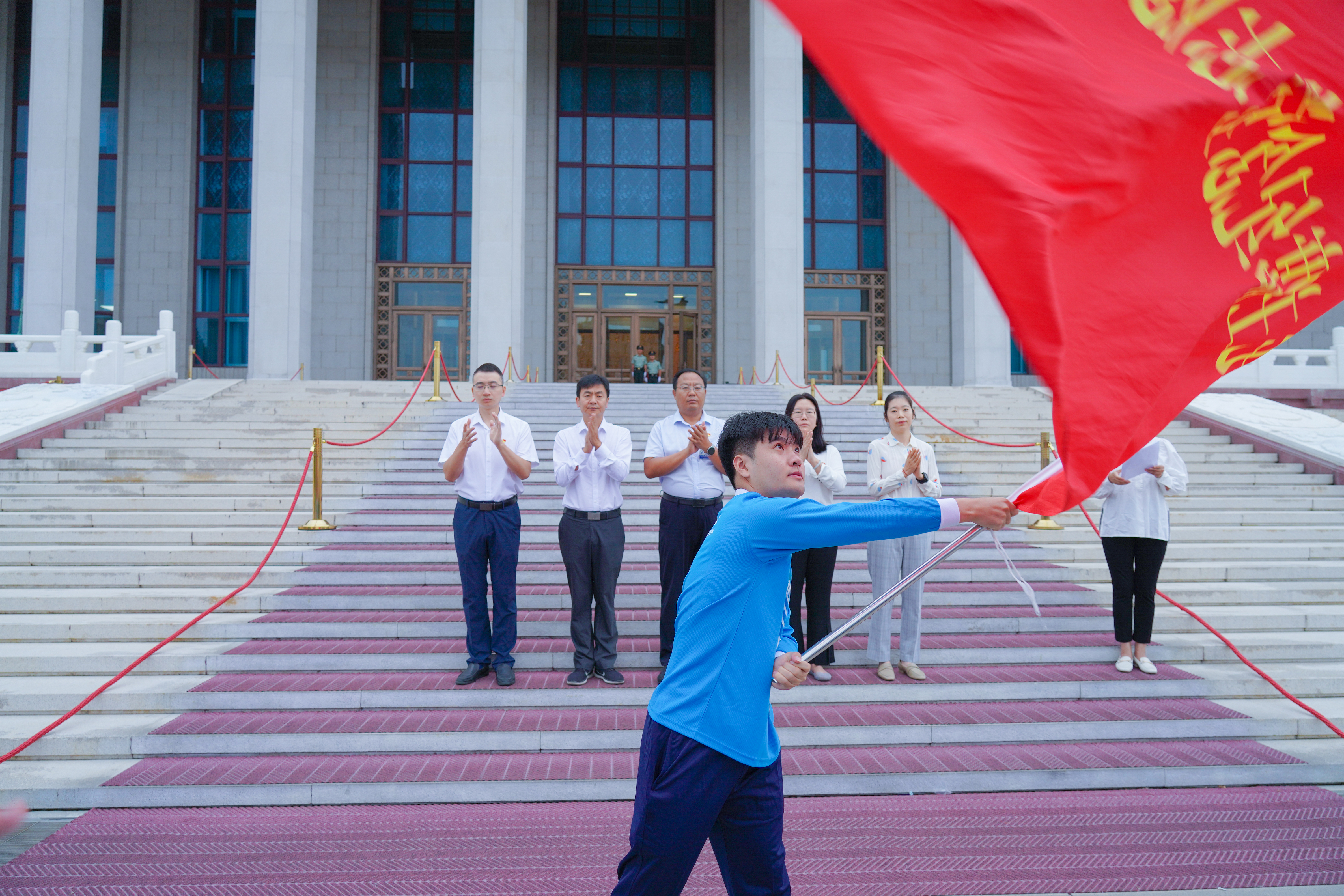 9月3日6點50分,第12批毛主席紀念堂志愿者上崗儀式在毛主席紀念堂舉行。毛主席紀念堂管理局瞻仰接待處處長馬恒祥、北京團市委企業(yè)部副部長薛淑婭、北京市志愿服務指導中心副主任劉贏、一輕控股團委副書記黃娟娟、中建五局北京公司黨委副書記劉宇軒等相關負責同志出席上崗儀式,來自北京輕工技師學院、中建五局的46名志愿者參加儀式。