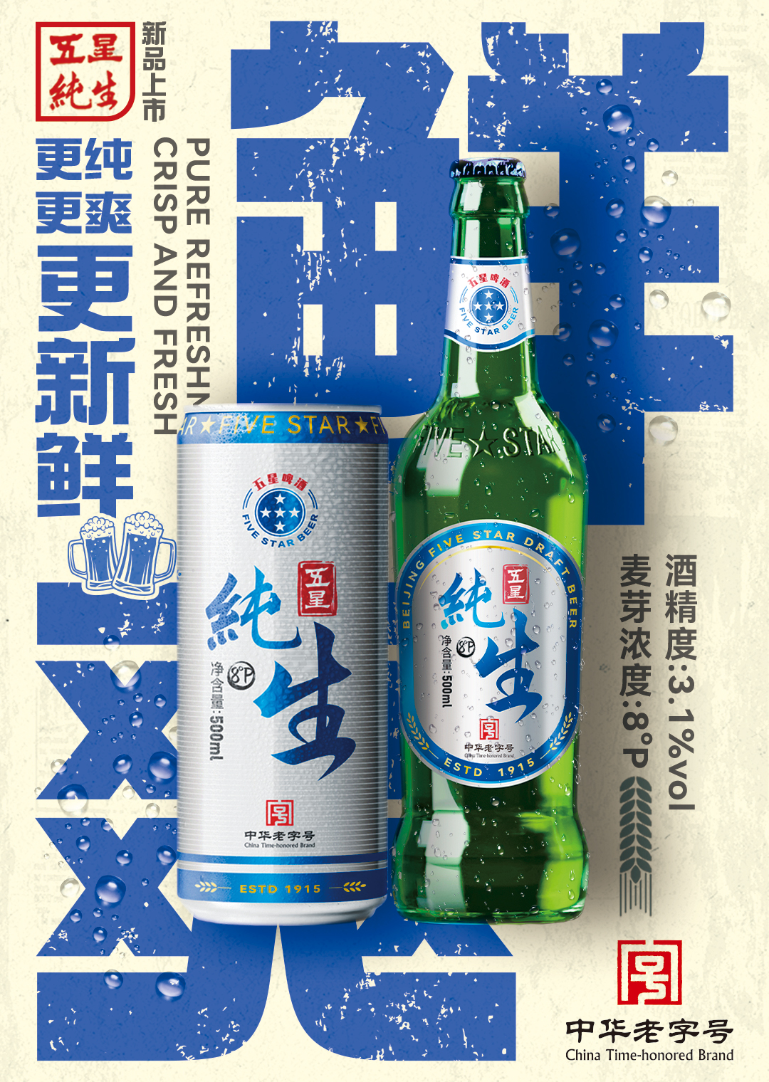 五星啤酒不僅僅是品牌美譽(yù),更是創(chuàng)始人對(duì)質(zhì)量的嚴(yán)格把控和對(duì)精湛技術(shù)的不懈追求,正是有了這份情懷,五星啤酒在中國人心中扎根,更是在北京人心中燃起熊熊之火,成為一代代人喜愛和推崇的經(jīng)典品牌。1921年在比利時(shí)布魯塞爾舉辦的世界博覽會(huì)上獲得了啤酒類別的兩項(xiàng)大獎(jiǎng),1929年榮獲巴拿馬世界博覽會(huì)金獎(jiǎng),1959年五星啤酒被指定成為國宴用酒。2023年五星啤酒正式重磅回歸,并發(fā)布五星全麥芽啤酒。五星全麥芽啤酒繼承五星啤酒“品質(zhì)至上,技藝精湛”的傳統(tǒng)釀造理念,選取優(yōu)質(zhì)麥芽和啤酒花,麥香純正、香氣清新、酒體協(xié)調(diào),以高性價(jià)比來滿足消費(fèi)者的需求。當(dāng)下“國潮風(fēng)”成為消費(fèi)新熱點(diǎn),更為國產(chǎn)老品牌的復(fù)興帶來難得的機(jī)遇,五星啤酒回歸正當(dāng)其時(shí)。未來五星啤酒將繼續(xù)以百年品質(zhì)、創(chuàng)新精神,力爭成為老字號(hào)品牌復(fù)興新標(biāo)桿。