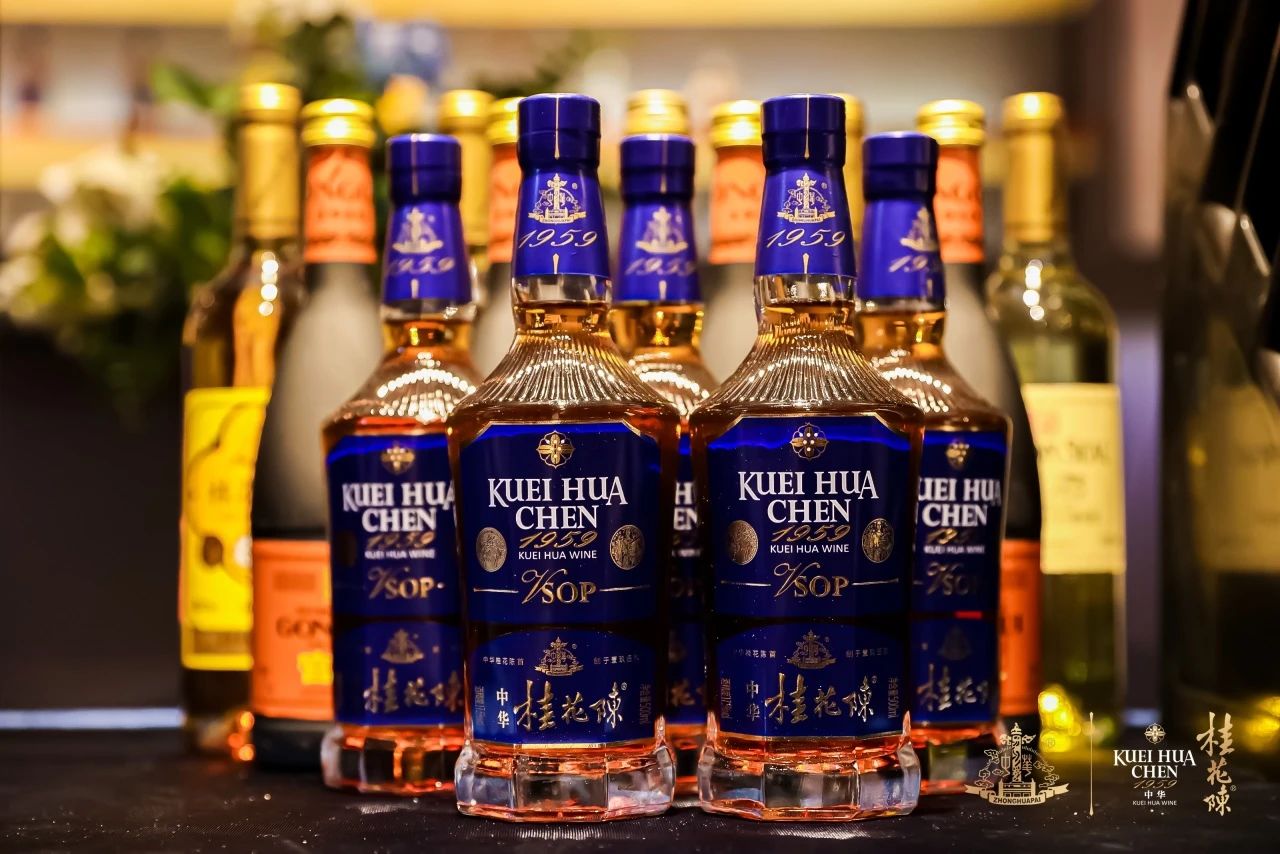 中華牌桂花陳酒(VSOP)以葡萄酒為基酒,精選八月含苞待放的新鮮桂花,宗其宮廷秘籍之法,將葡萄與桂花香平衡和諧,使得桂花芳香精華完整保存,馥郁香醇的桂花陳(VSOP),香氣鮮靈悠長,清幽淡雅,酒色如深琥珀,晶瑩剔透;在調(diào)配過程中,研發(fā)團隊適量加入VSOP白蘭地,提高酒度,更加突出了桂花香氣的典型性,并配以赤蘚糖醇和甜菊糖苷等代糖物質(zhì)和部分白砂糖,口感更加溫潤綿甜,以便于更多消費者飲用。