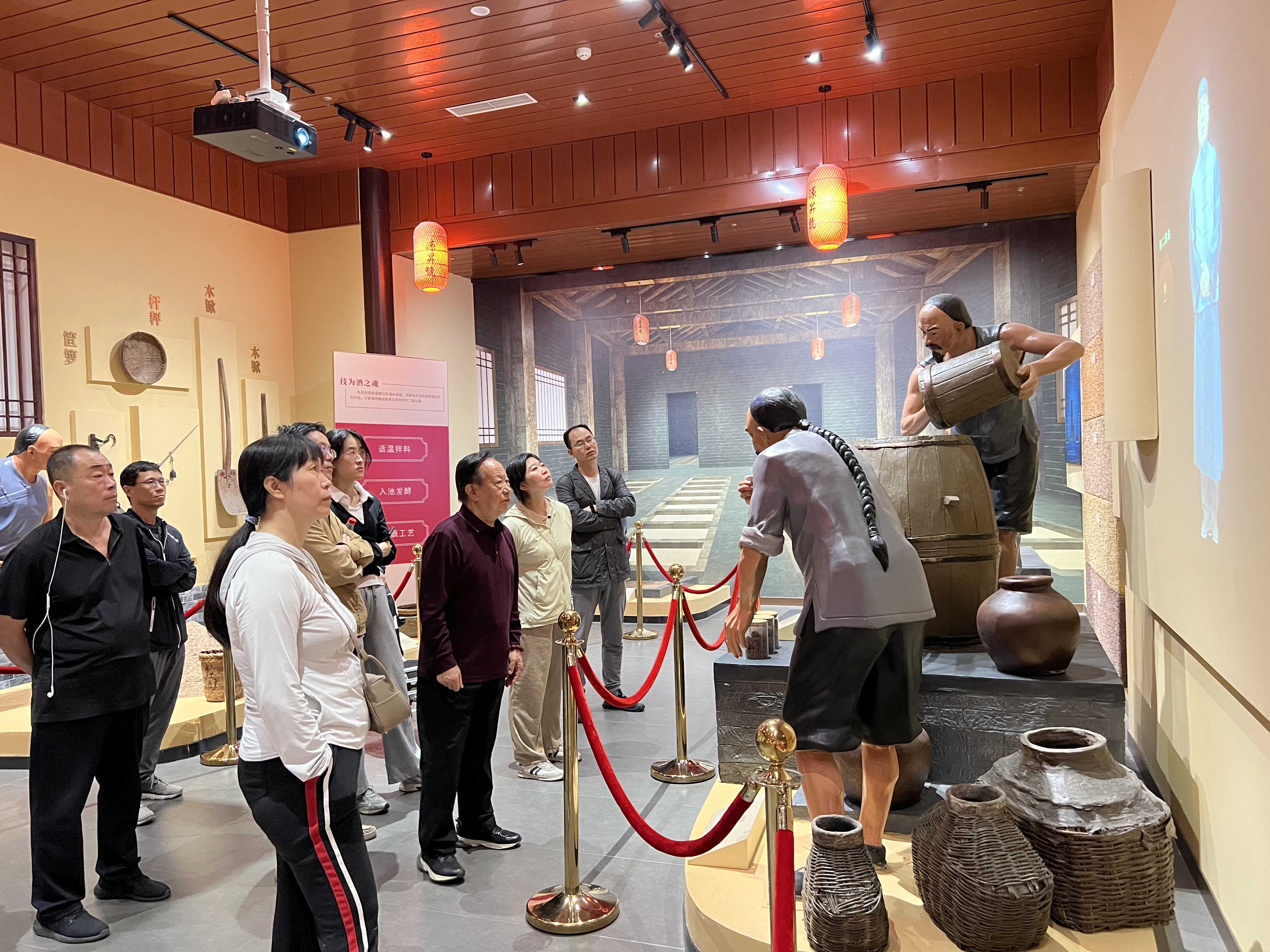步入博物館,仿佛穿越時(shí)光長(zhǎng)廊。地上部分,具有古樸典雅的明清建筑風(fēng)格,分為時(shí)空走廊、起源廳、老工具廳、企業(yè)發(fā)展廳、產(chǎn)品展示廳、品酒室、游客接待中心;地下分為品酒區(qū)、橡木桶區(qū)、儲(chǔ)存區(qū)和窖池四個(gè)部分。珍貴的歷史文獻(xiàn)、老照片、老設(shè)備實(shí)物及沉浸式場(chǎng)景還原,全面展示了龍徽自1910年創(chuàng)立以來(lái),從宮廷御用到國(guó)宴用酒,從民族品牌崛起到現(xiàn)代國(guó)企創(chuàng)新發(fā)展的光輝歷程。